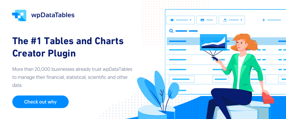 wpDataTables gives you an all-in-one solution for working with large amounts of data and is the only chart/table-building solution fully supporting MySQL, MS SQL, and PostgreSQL databases.