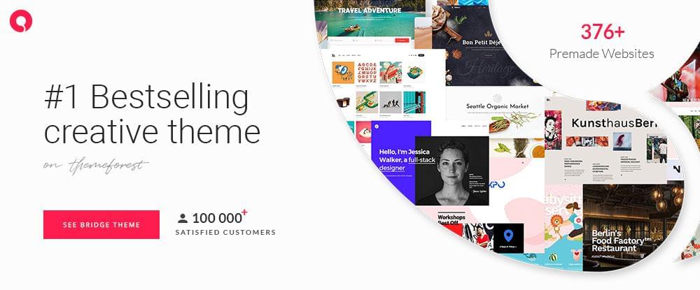 Bridge is a best-selling creative WordPress theme that offers a perfect solution to building an outstanding website for virtually any business niche. Bridge’s tons of website-building options and open-ended customizability have made it the most popular Creative WordPress theme ever, as evidenced by its more than 100,000 satisfied customers and 5 star-rated support.