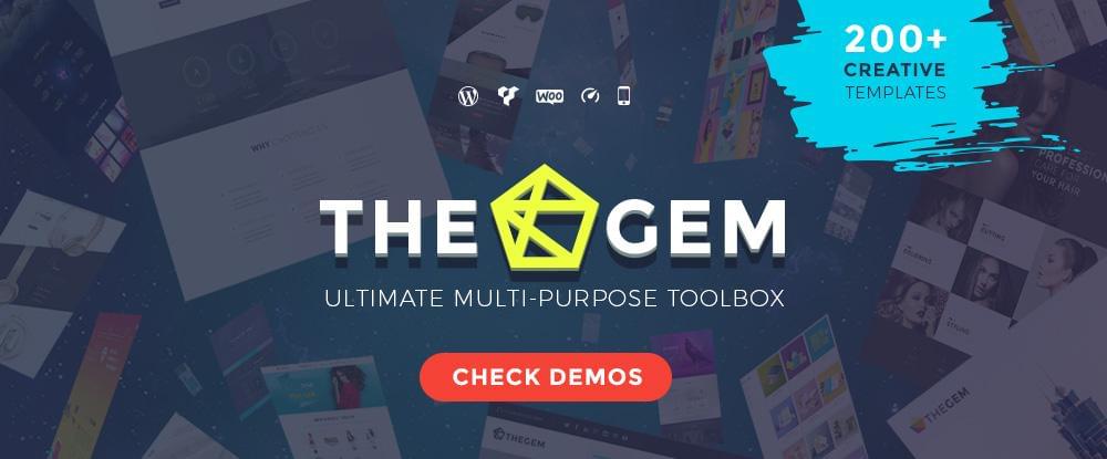 TheGem is a versatile, responsive, high-performing multipurpose toolbox designed to suit a multitude of creative website building uses. The stunning design concepts it makes available to you, together with its powerful and flexible tools will serve you well if your website needs address creatives, agencies, business and finance, online shops, portfolios, blogs, or just about anything else.