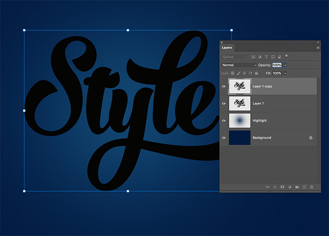 Create or place your artwork onto a new layer. Text works great, but the effect can also be applied to shapes.