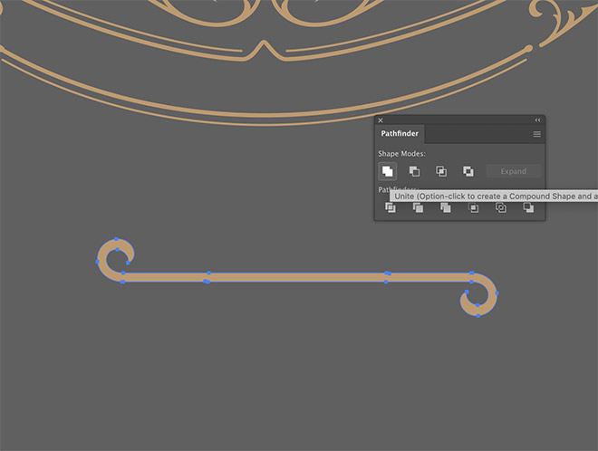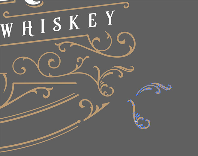 The Direct Selection tool can also be used to extend the straight edge of some of the ornate elements. Select just the points that create the end cap, then drag them while keeping the angle the same.