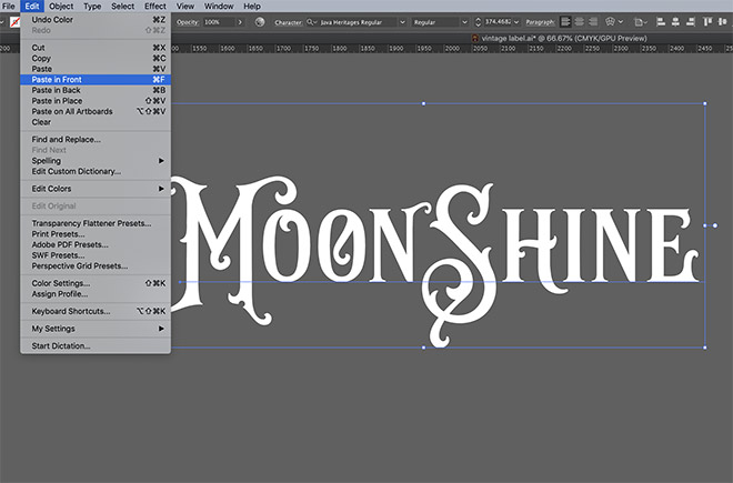Choosing alternative characters adds decorative effects that are usually traits of hand lettering, rather than a font! To make use of the layering feature, go to Edit > Copy, followed by Edit > Paste in Front.