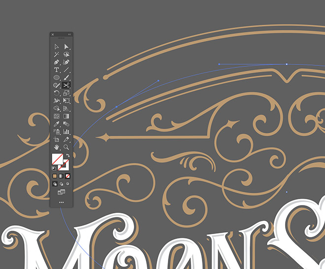 Continue building your ornamental composition to decorate the text. Try to follow the curves and outlines of the letters so the decorative elements complement the text.