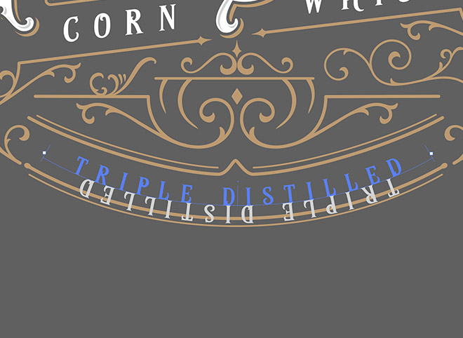 Copy and Paste this Type on a Path element and position it on the same decorative element at the bottom of the layout. To alter the text orientation, drag the handle to the other side of the path using the Direct Selection tool.