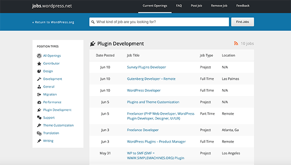 It’s definitely a recommended first stop on your WordPress job search.