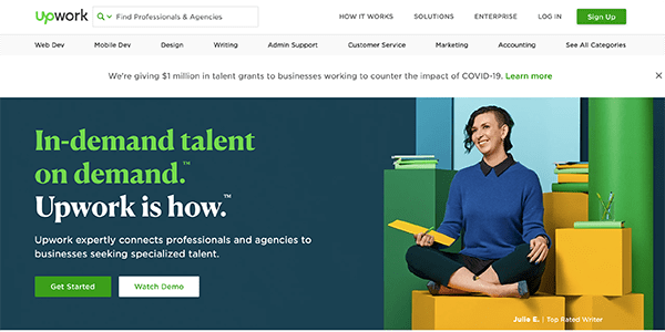 Upwork is a website that is made to find in-demand remote talent on demand. It’s set up more for gig and contract jobs more than full-time or part-time employment.